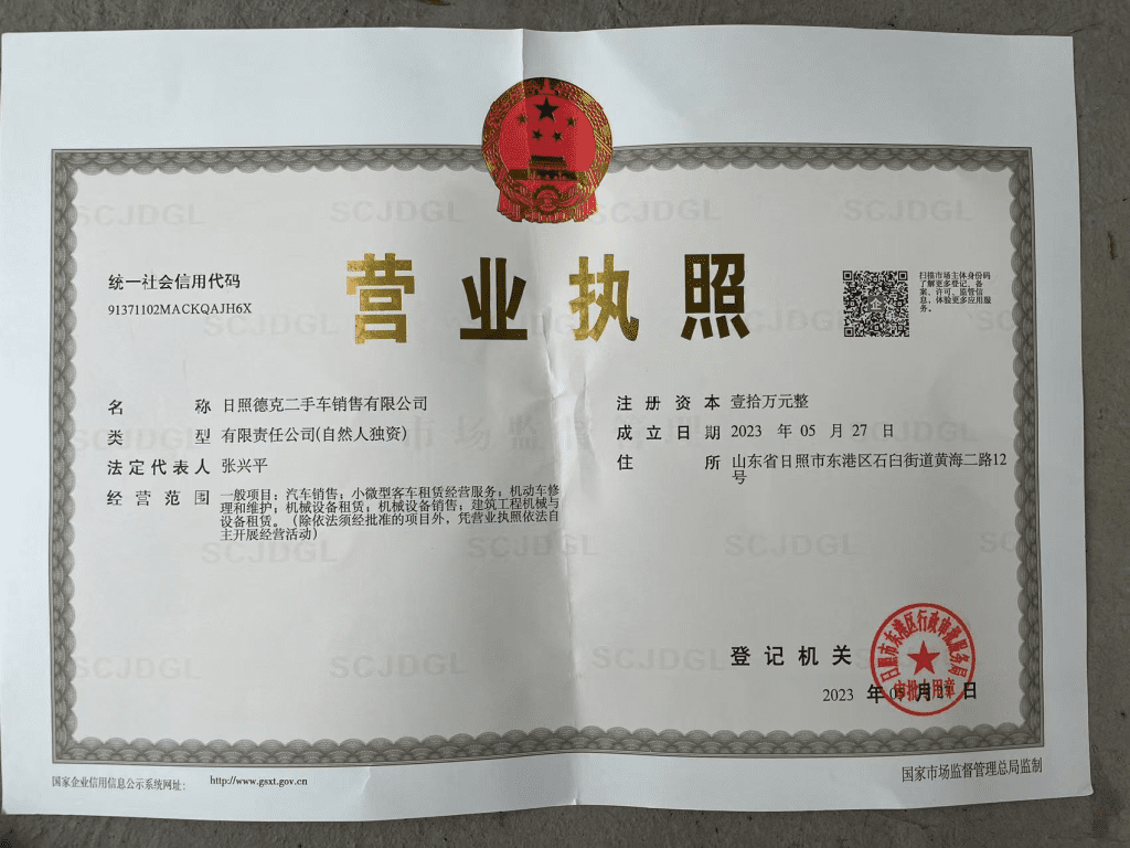 公司简介:该公司成立于2023年05月27日,位于中国山东省日照市,主营:各个品类二手挖掘机业务。该公司通过平台审核,具备合法经营资质以及可靠的信用记录。